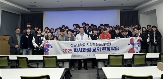 전남대학교 치의학전문대학원은 2025년 10월 29일(수), RISE(지역혁신중심대학지원체계) 사업의 지원으로 ‘첨단 치의학 및 인공지능 융합 현장학습’을 실시했다. 이번 프로그램에는 학사과정 1~2학년 학생과 교직원 등 70여 명이 참여했으며, 광주광역시 첨단미르치과, 쿠보텍, 인공지능종합지원센터 등을 방문해 첨단 치의학 기술과 AI 산업의 최신 동향을 체험했다.
