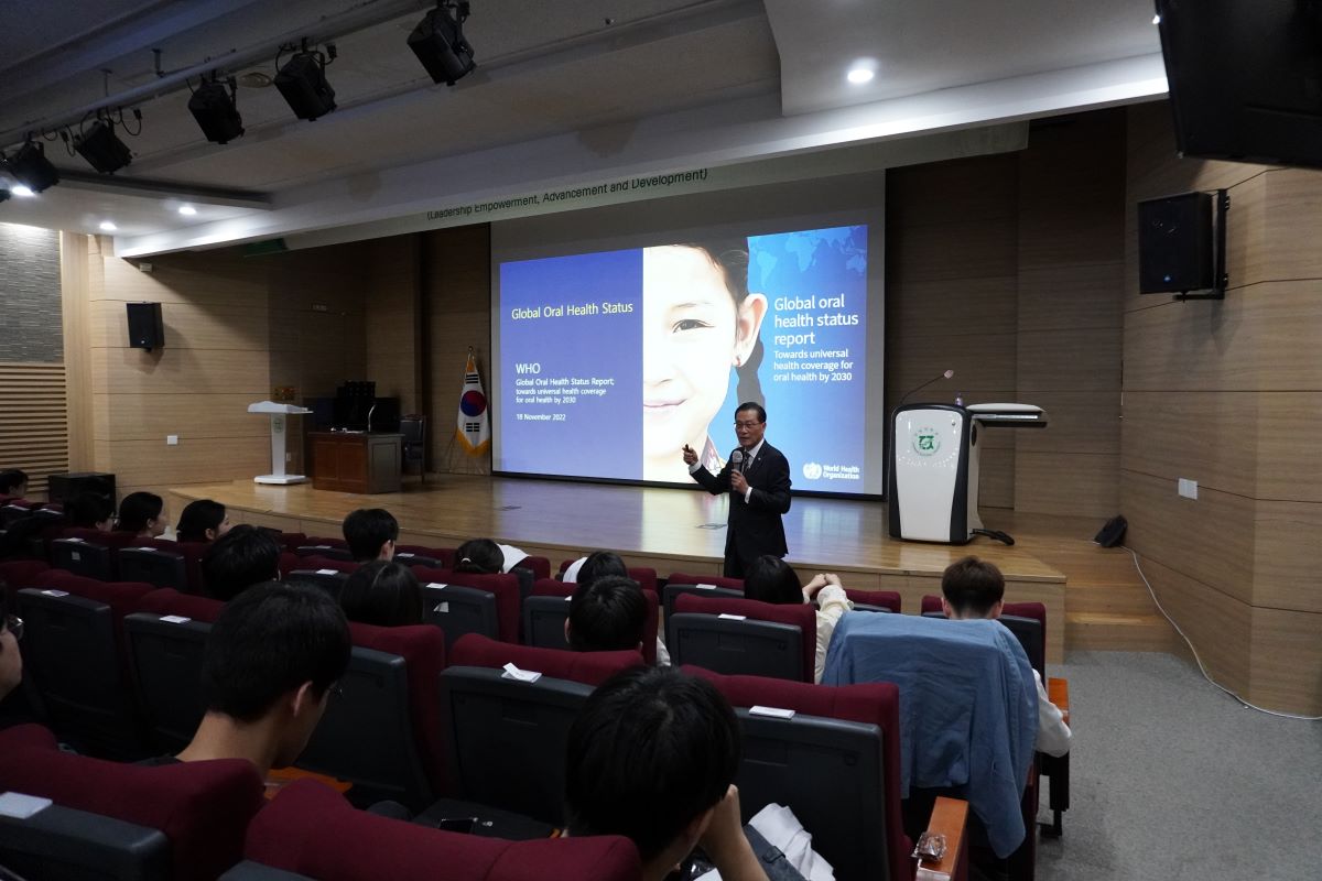 전남대학교 치의학전문대학원은 2025년 10월 13일(월), 2025학년도 ‘CNUSD LEAD 리더십 프로그램’의 일환으로 신흥연송학술재단 박영국 이사장(차기 세계치과의사연맹 회장)을 초청해 특강을 진행했다.